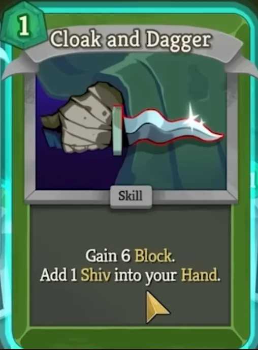 Hidden Daggers: Hidden Daggers+ perfectly bridges the gap between archetypes — discard cards (triggering Sly effects) while adding multiple Shivs to your hand simultaneously.